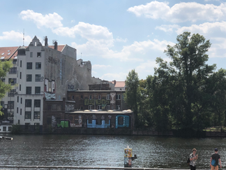 Como la mayoría de los museos cierran los lunes, nos fuimos a ver arte en el muro. No tardamos mucho en llegar a la East Side Gallery, la zona del muro pintada y llena de grafitis artísticos (muchos de protesta y crítica social). Es de los puntos más turísticos de Berlín y se notó en la cantidad de turistas que había (sobre todo delante del famoso grafiti del beso entre Bréhznev y Honecker). Cruzamos el puente que había sobre el río y nos encontramos en el barrio de Kreuzberg, uno de los más alternativos de la ciudad. ¡Justo en este barrio fue el centro del punk en el Berlín Occidental! Paseamos un poquito más por la zona y, de ahí, nos fuimos a los patios interiores y la Sinagoga. Me marché yo un poco antes porque había quedado con un amigo para tomarnos unas cervezas en la zona de Badehaus, con un ambiente super guay también.